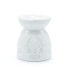 Bring a playful sense of calm to your space with this oil burner with Buddha cutout in crisp white.