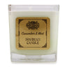 Cucumber & Mint Soybean Wax Candle made from hydrogenated soybean oil and free of synthetic wax or paraffin. These candles are presented in chunky recycled glass jars that can be reused, packaged nicely (see below) with a special dust cover.